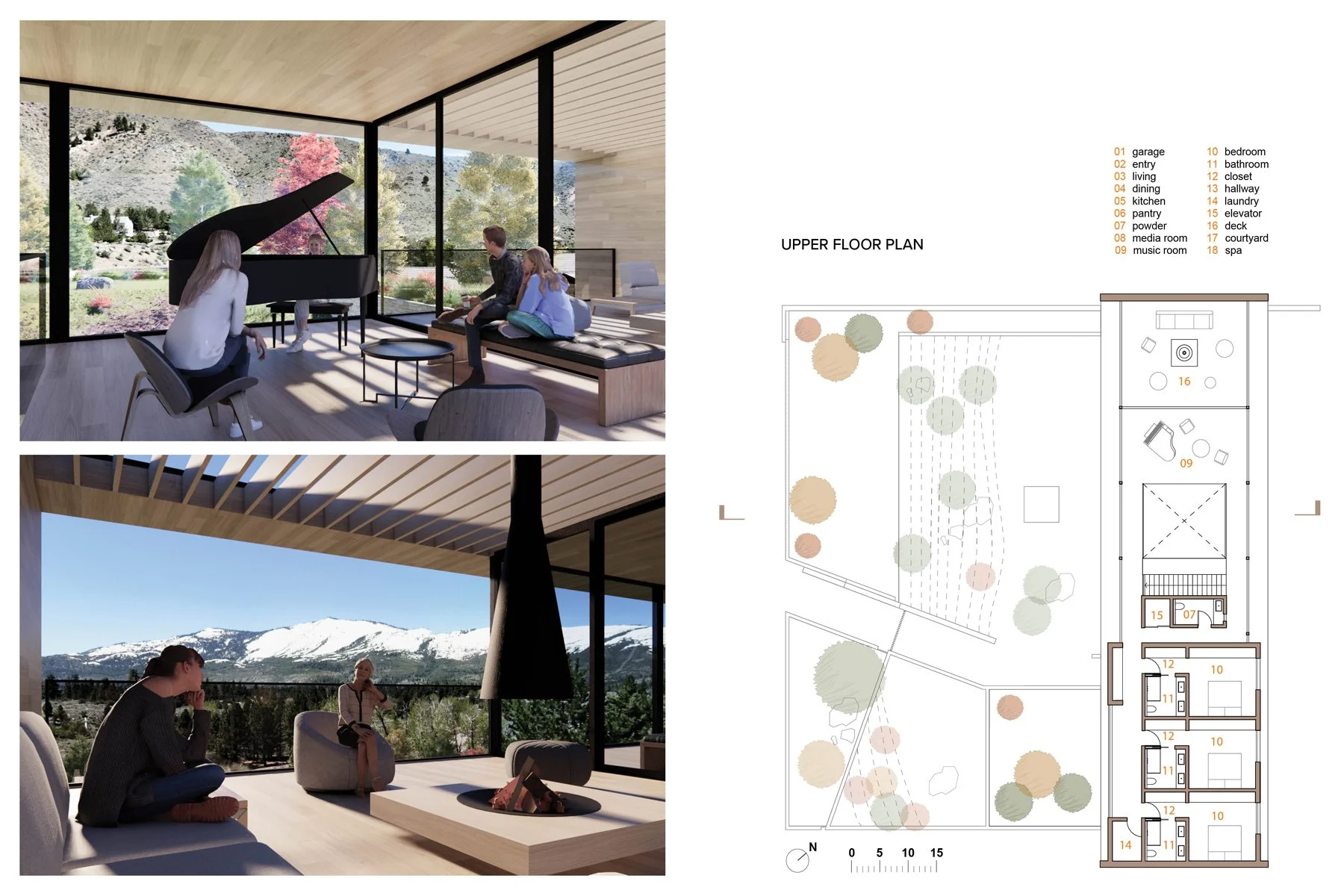 In this way, the home becomes a sanctuary of stillness, offering its inhabitants a profound sense of calm while maintaining a deliberate and measured connection to the world beyond.